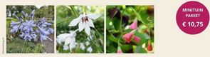 De blauwe Agapanthus zorgt voor een krachtig accent, terwijl de sierlijke, geurende bloemen van de Abessijnse gladiool daar mooi bij aansluiten. De lage geluksklaver vormt een speelse onderlaag en vindt gemakkelijk een plek tussen andere planten of in een ruime pot. Zo creëer je ook op balkon of terras een verrassend rijke bloei.