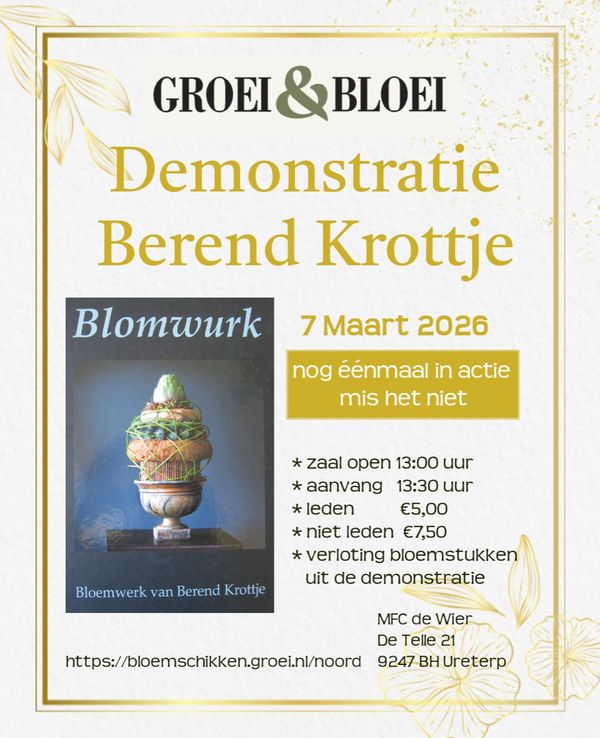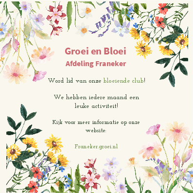 Betalen kan op NL18RABO0320469883 t.n.v. KMPT Groei & Bloei afdeling Franeker o.v.v. ‘Herfstschikking’ + naam deelnemer óf contant bij aanvang.